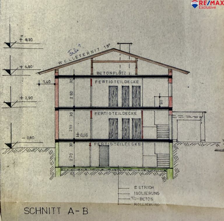 - Satteldach mit Eterniteindeckung