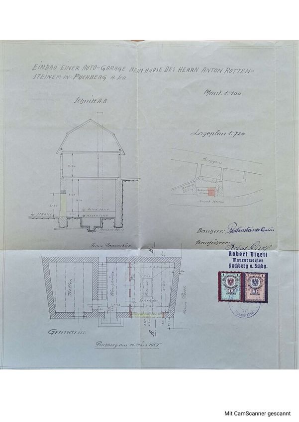 1951 wurde ein Teil des Kellers zu einer Garage mit elektrischem Tor (Hörmann) umgebaut
