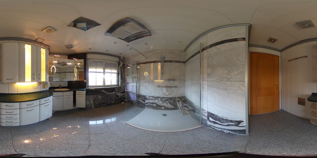 > Badezimmer mit großer bodenebener Dusche