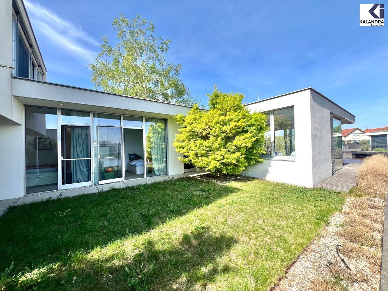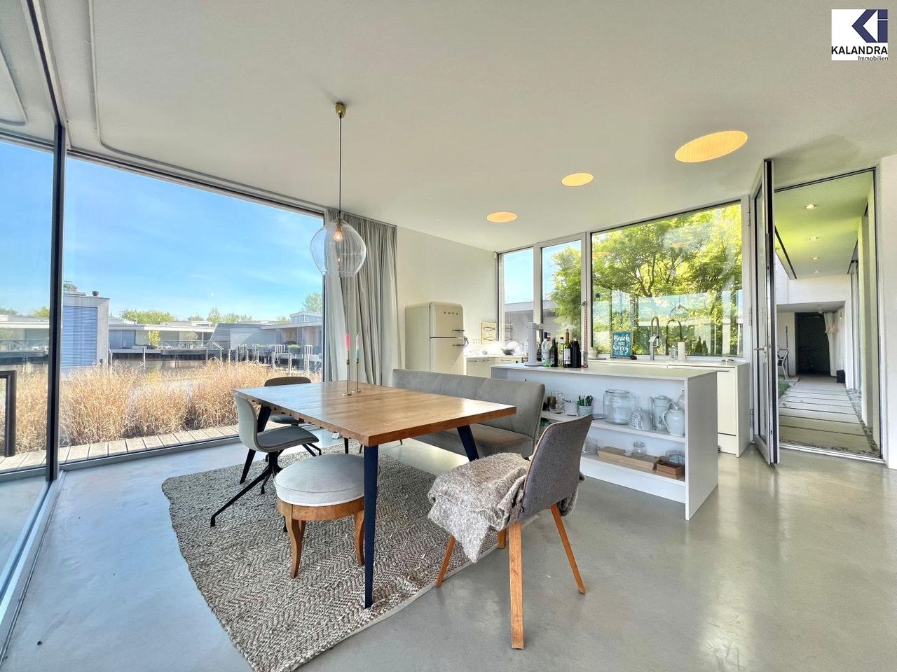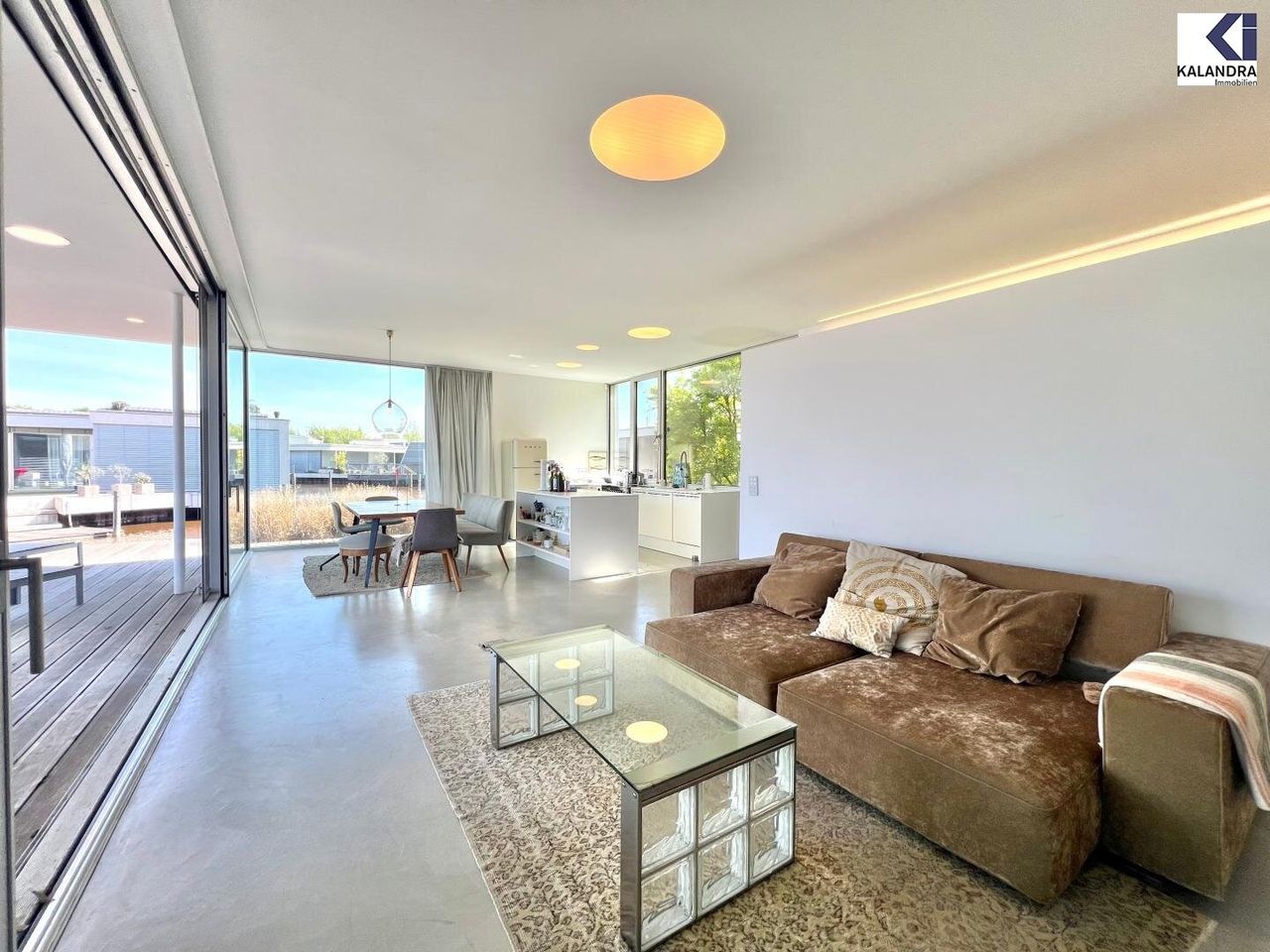 LUXUS-VILLA am NEUSIEDLERSEE Das luxuriöse Seehaus in Loftbauweise, direkt am Seeufer gelegen, erstreckt sich über zwei Etagen mit insgesamt ca. 215m² Wohnfläche und folgender Raumaufteilung: Gartengeschoß: Vorraum, großes Wohn-& Eßzimmer mit offener Küche (ca. 44m²) und Ausgang in den Innengarten sowie auf die ca. 40m² große, westseitige Seeterrasse mit Bootsanlegestelle, 2 Schlafzimmer (ca. 10m² & 12m²) sowie ein Badezimmer mit Wanne und ein separates WC; Obergeschoß: ein Loungezimmer mit Ausgang auf ein südwestseitges, begehbares Flachdach, 2 Schlafzimmer, ein Wannen-& Duschbad mit WC, begehbare Garderobe. Das Seehaus verfügt außerdem über eine private Bootsanlegestelle für bis zu 4 Segel- oder E-Boote, die...