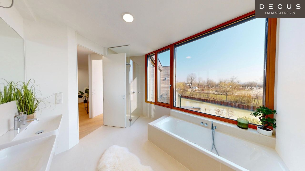Das Seehaus bietet erstklassige Sport- und Freizeitmöglichkeiten durch den direkten Zugang zum Neusiedlersee. Kein Kanal den Sie hinaus fahren müssen, Sie sind schon da – mitten im See. Die Raumhohe Panoramaverglasung ermöglicht Ihnen einen uneingeschränkten Blick auf das Wasser. Dadurch verschwimmt die Grenze zwischen Innen und Außen nahezu und dies ermöglicht es Ihnen, den See als integralen Bestandteil Ihres Wohnraums zu erleben. Im Wohnessbereich kann optional ein offener Kamin errichtet werden.