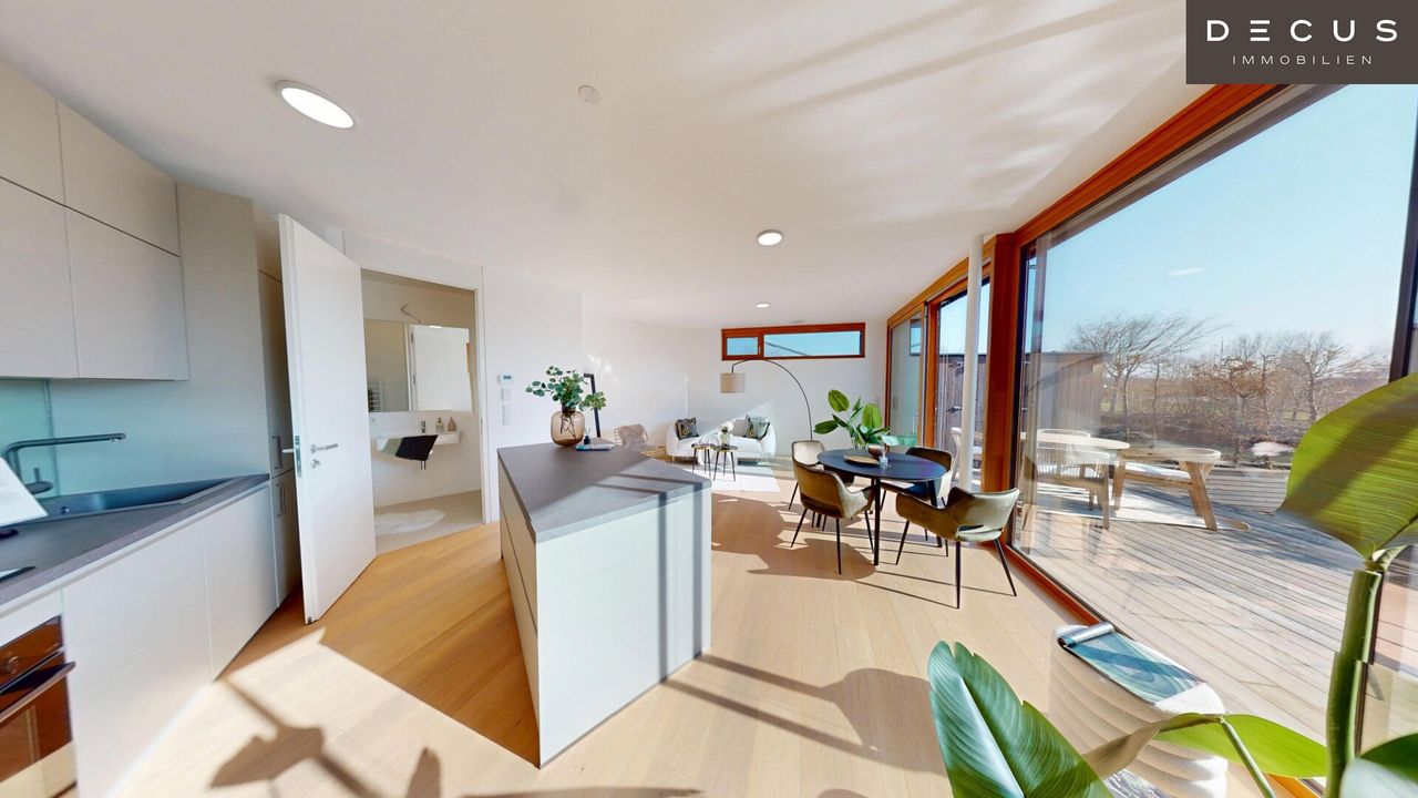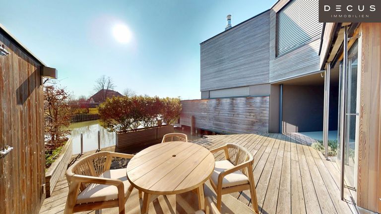 Das Seehaus bietet erstklassige Sport- und Freizeitmöglichkeiten durch den direkten Zugang zum Neusiedlersee. Kein Kanal den Sie hinaus fahren müssen, Sie sind schon da – mitten im See. Die Raumhohe Panoramaverglasung ermöglicht Ihnen einen uneingeschränkten Blick auf das Wasser. Dadurch verschwimmt die Grenze zwischen Innen und Außen nahezu und dies ermöglicht es Ihnen, den See als integralen Bestandteil Ihres Wohnraums zu erleben. Im Wohnessbereich kann optional ein offener Kamin errichtet werden.