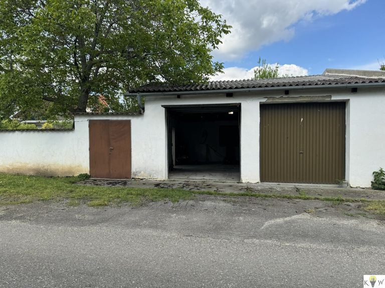 Ein Geräteraum mit ca 45 m² und zwei Garagentore befindet sich am hinteren Teil des Grundstückes und ist auch von der hinteren Zufahrt begeh- und befahrbar.