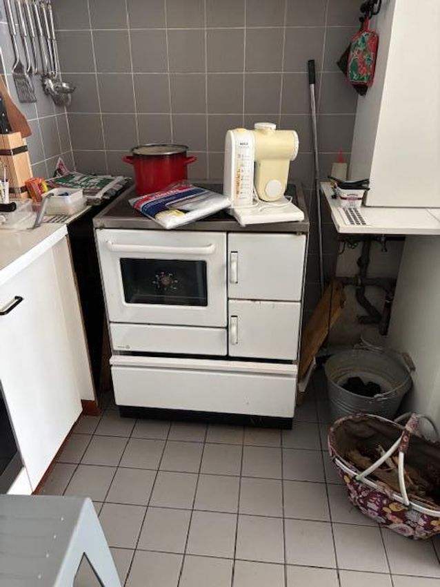Der Holzofen, mit Kochstelle, in der Wohnküche bietet noch eine zusätzliche Wärmequelle. .