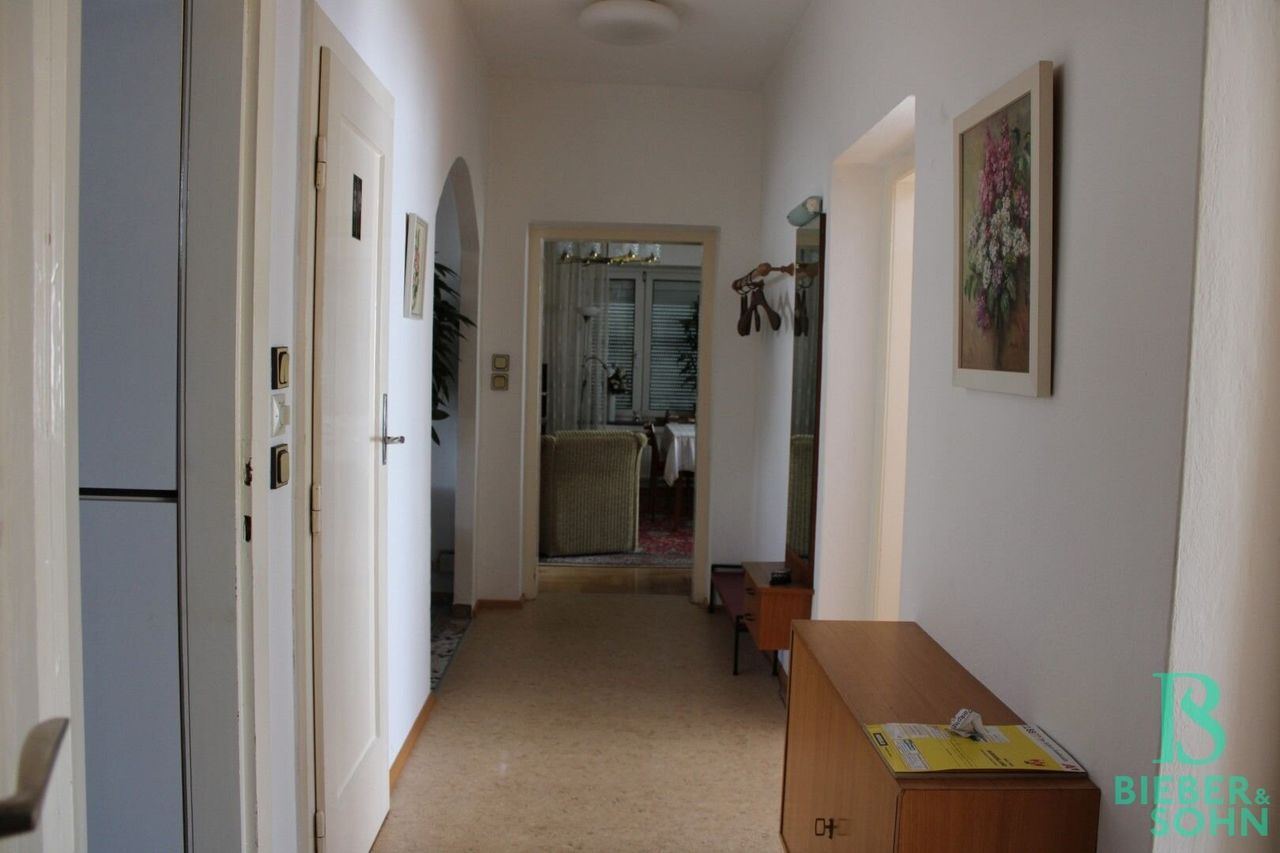 Der in den 60er Jahren errichtete Bungalow, welcher durch sein Alter schon etwas in die Jahre gekommen ist, bietet jedoch mit einer Gesamtnutzfläche von ca. 250m² und einer Grundstückfläche von ca. 1.069m² sehr viel Potenzial und Möglichkeiten an. Ende der 90er Jahre wurden die Süd-Fenster auf 2-Fach-Isolierglas mit elektrischen Außenjalousien getauscht, das Dach erneuert und der Wintergarten errichtet, wodurch eine Gesamtwohnfläche von ca. 105m² entstanden sind. Der teilweise, ca. 103m² große „Wohnkeller“ bietet ebenfalls viele Optionen an sowie der großzügige Dachstuhl ausbaufähig ist. Im Garten besteht des Weiteren noch eine ca. 45m² große Wohn-Gartenhütte, von dieser eine Hälfte zum Wohnen und die Andere für Geräte-, Lager- oder Abstellraum genutzt werden kann und sollte die Pflege des großen Gartens einmal zu aufwendig werden, so ist eine Grundstücksteilung ebenfalls möglich, da am Gartenende bereits eine Straßenzufahrt besteht.