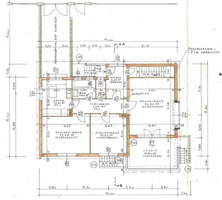 Die Ausstattung ist dem alter entsprechend aber in einem guten und gepflegten Zustand! Von Steinboden, Parkett, Fliesen und Linoleum ist alles vorhanden… und die Küche, sowie die Nassräume lassen die 60er Jahre wieder auferstehen. Nordseitig bestehen noch Verbundfenster mit Alu-Jalousien aber der Wintergarten, das Ostfenster und die Südfenster sind bereits mit 2-Fach-Isolierung und jedes Fenster mit elektrischen Außenjalousien versehen.