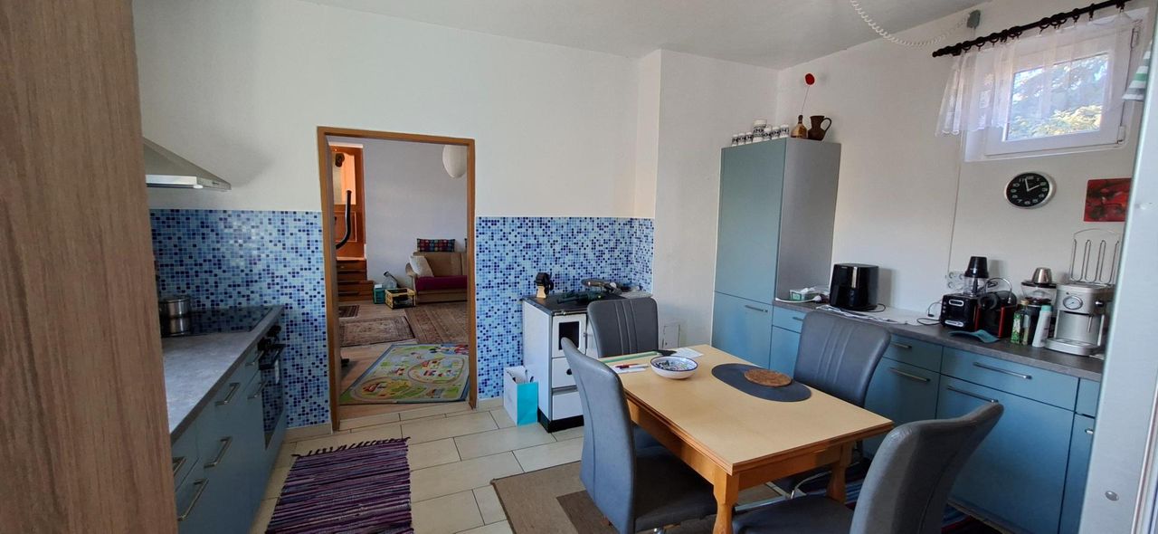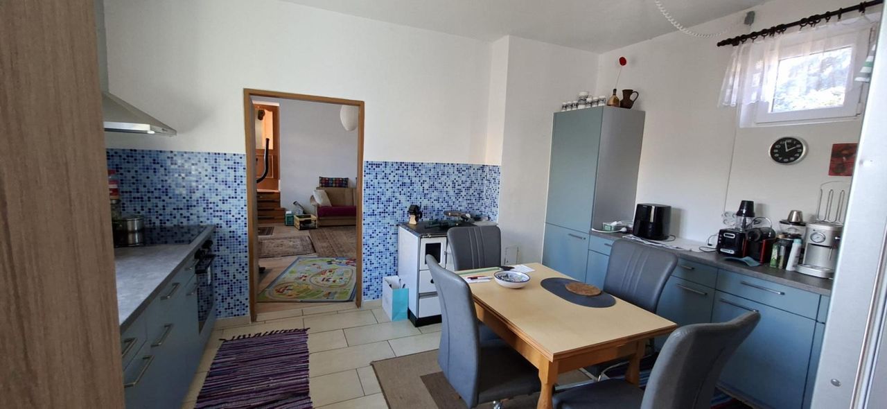 Die Küche ist funktional gestaltet und bietet ausreichend Stauraum sowie Arbeitsfläche. Durch die Nähe zum Essbereich entsteht ein praktischer und familiärer Lebensmittelpunkt.