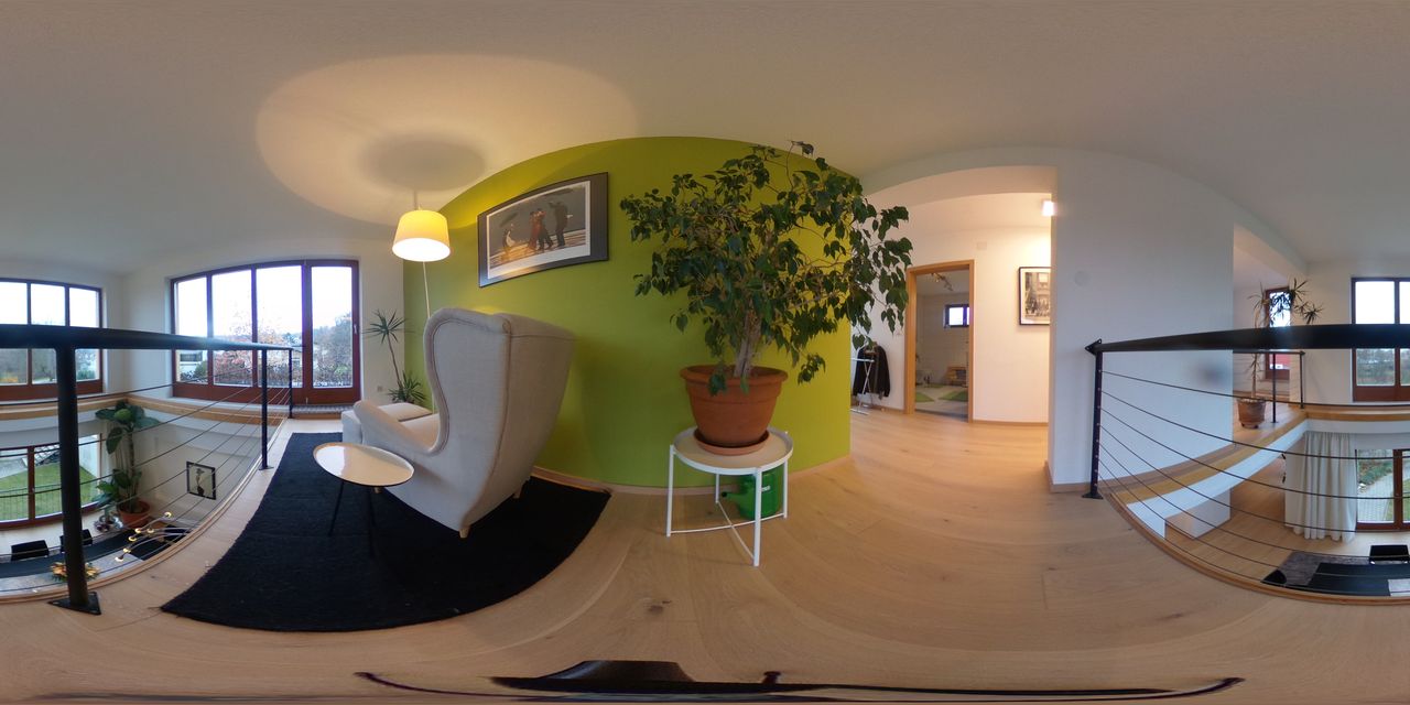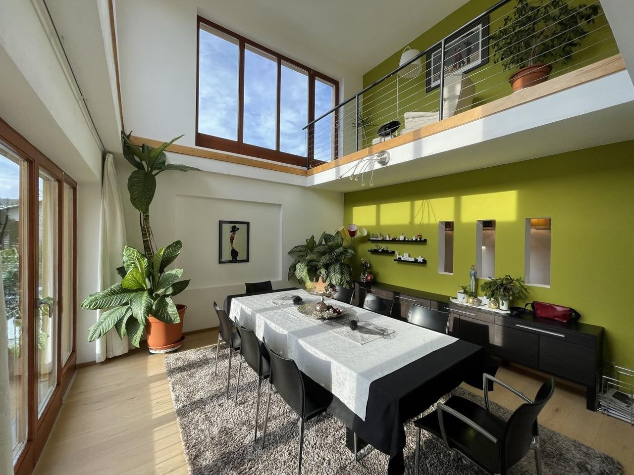 Die Galerie eröffnet eine spannende Blickachse in den Wohnbereich – ein architektonisches Highlight, das Tiefe und Großzügigkeit erzeugt.