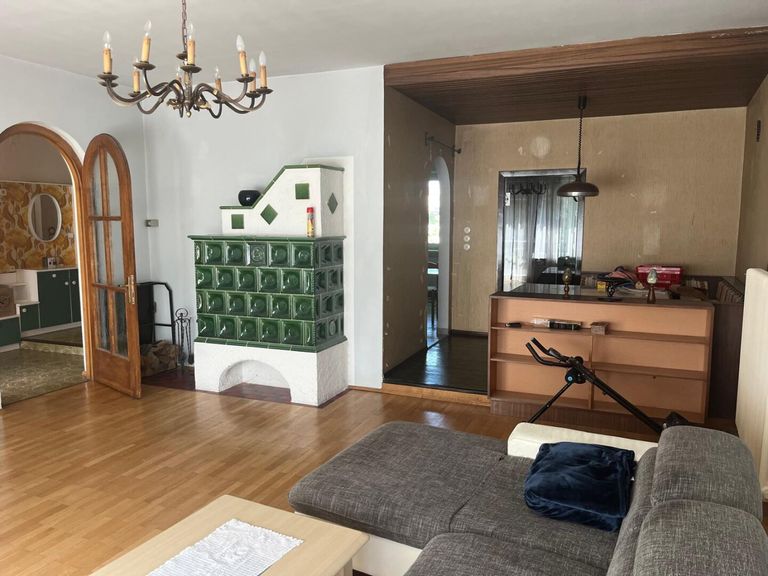 Im Untergeschoss des gepflegten Wohnhauses (ca 150m2), welches teilmöbliert übergeben wird, finden Sie ein großes Wohnzimmer mit einem wunderbaren Kachelofen und Zugang zur Terrasse, eine Küche mit Fenster, Speis und Essbereich, sowie ein kleines Büro und eine getrennte Toilette vor.