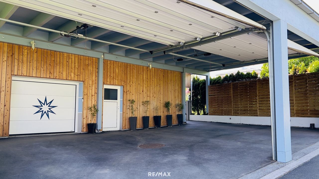 Für Fahrzeuge stehen eine Garage mit ca. 28,43 m²sowie zusätzlich ein großzügiges Carport zur Verfügung, das 2018 errichtet wurde und Platz für mehrere Autos bietet. Elektrische Rolltore am Carport sorgen für zusätzlichen Komfort.