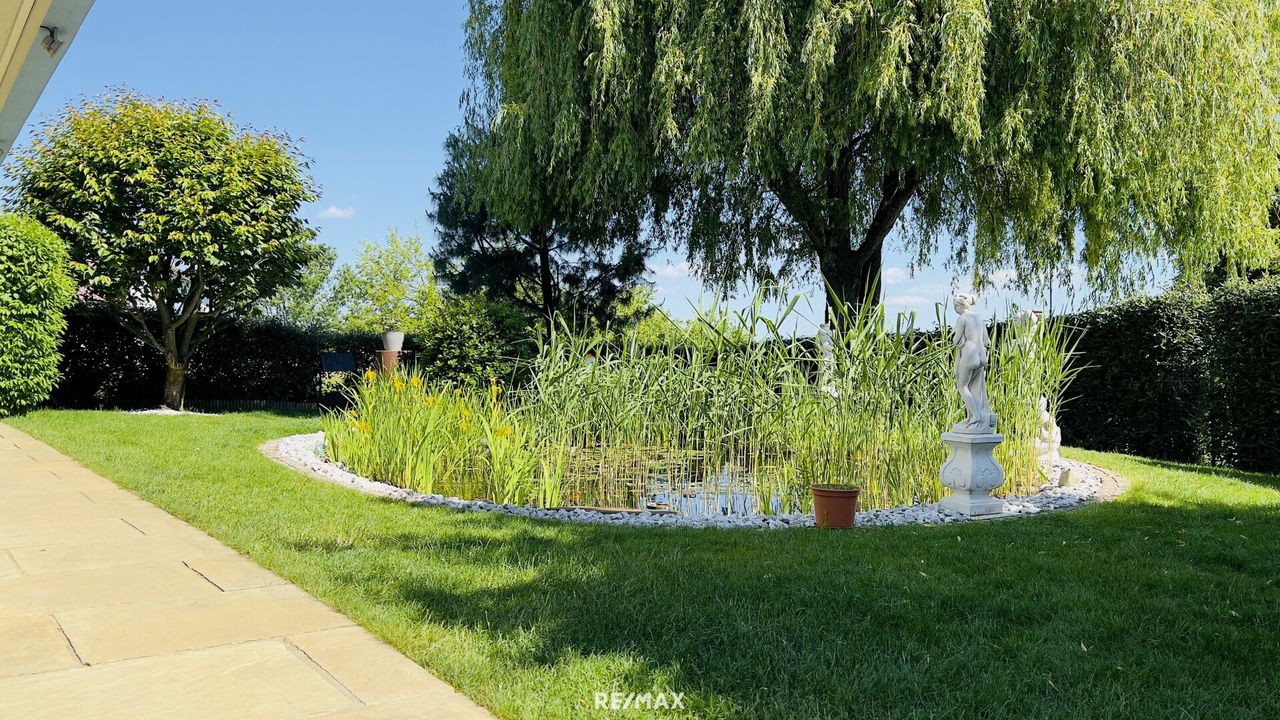 Ein besonderes Highlight ist der liebevoll gestaltete Garten mit Grünflächen, einem Biotop, Hochbeeten und mehreren ruhigen Sitzplätzen, der eine private Wohlfühloase schafft. Zusätzlich lädt eine Terrasse mit einer Größe von ca. 15 m² zum Verweilen ein.