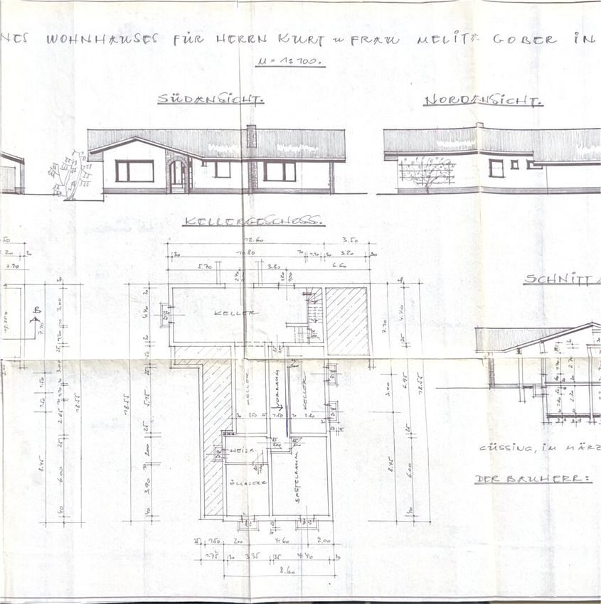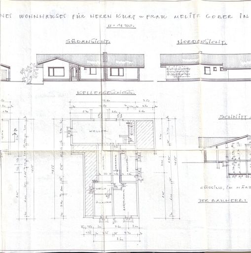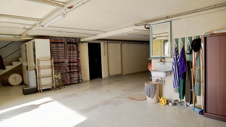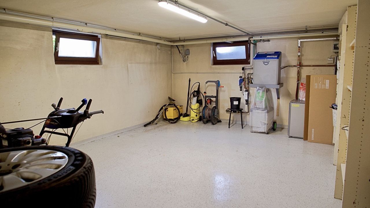 Das Haus ist großteils unterkellert: dort befinden sich unter anderem der Heizraum, ein Fitnessraum und eine integrierte Doppelgarage. Eine dritte Garage mit Zugang zum Erdgeschoss ergänzt das Raumangebot.