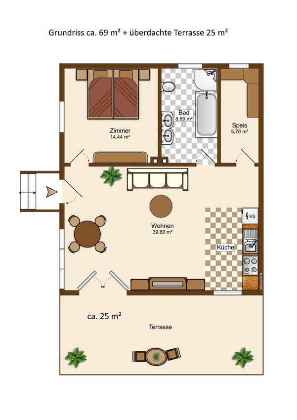 • teilweise überdachte Terrasse – ideal für entspannte Stunden im Freien