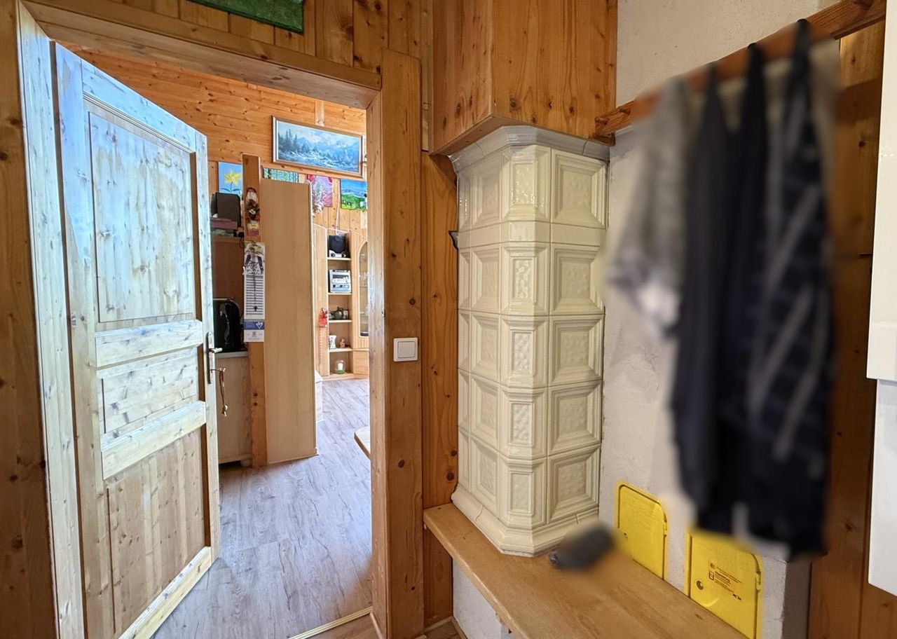 Das Herzstück bildet der großzügige Wohn- und Essbereich, der mit seiner offenen Gestaltung viel Platz für gemeinsame Stunden bietet. Der zentrale Kachelofen sorgt für eine besonders behagliche Atmosphäre und versorgt zusätzlich Schlafzimmer und Badezimmer mit wohliger Wärme.