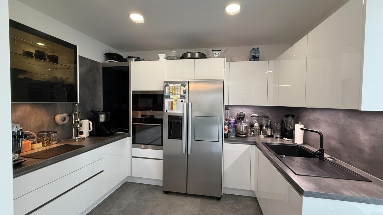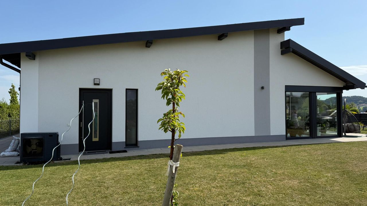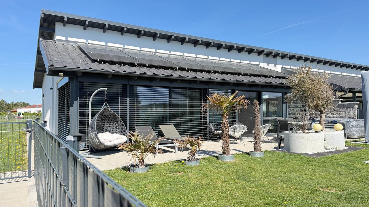 Die Haustechnik ist auf Nachhaltigkeit und Komfort ausgelegt: Eine Luftwärmepumpe mit Fußbodenheizung sorgt für behagliche Wärme, und im Sommer für ein klimatisiertes Haus, während die Photovoltaikanlage mit Speicher die Energiekosten erheblich reduziert. Eine Entkalkungsanlage garantiert bestes Wasser im ganzen Haus.