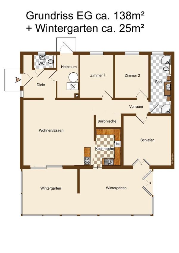 • großzügiger, heller beheizter Wintergarten