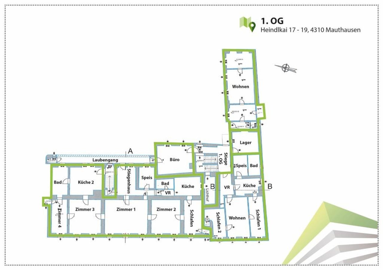 Im Herzen von Mauthausen stehen die beiden Stadthäuser Heindlkai 17 und 19 zum Verkauf! Die Gesamtliegenschaft teilt sich wie folgt auf: Heindlkai 17 (Denkmalschutz) Im Erdgeschoss sind aktuell 2 Einheiten vermietet (Kaffeehaus und Kosmetikstudio). Im 1. OG befinden sich ein kleines Büro und eine große Altbauwohnung (beide Einheiten bestandsfrei). Heindlkai 19 (Denkmalschutz) Im Erdgeschoss befinden sich diverse Lagerflächen bzw. Kellerräume. Im 1. OG und 2. OG befinden sich jeweils 2 Wohnungen. Im Innenhof befindet sich ein Innenhofgebäude (kein Denkmalschutz) mit Garage bzw. Nebenräumen (Leerstand). Zusätzlich verfügt die Liegenschaft über einen großen Garten mit Pool. Dieser Bereich könnte für eine zukünftige...
