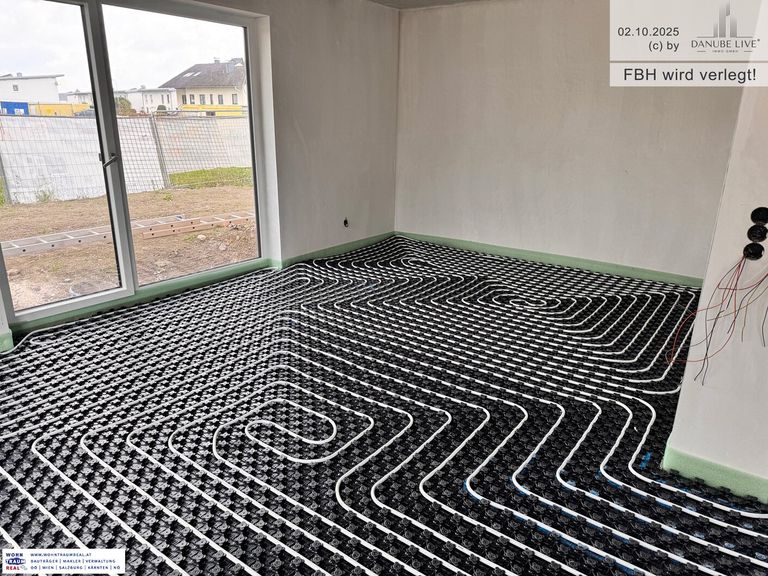 03.10.2025: Boden, Estrich und Fußbodenheizung sind verlegt.