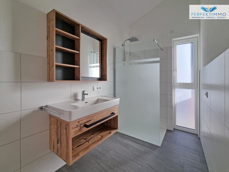 Auch die Badezimmer lassen keine Wünsche offen: Hochwertige Waschtische, beleuchtete Spiegel und geschmackvolle Schränke sorgen für ein luxuriöses Ambiente.