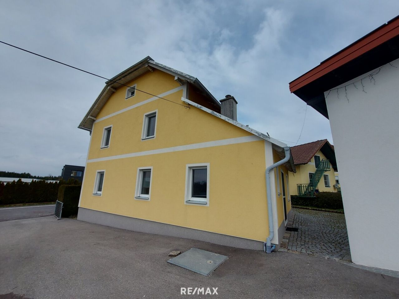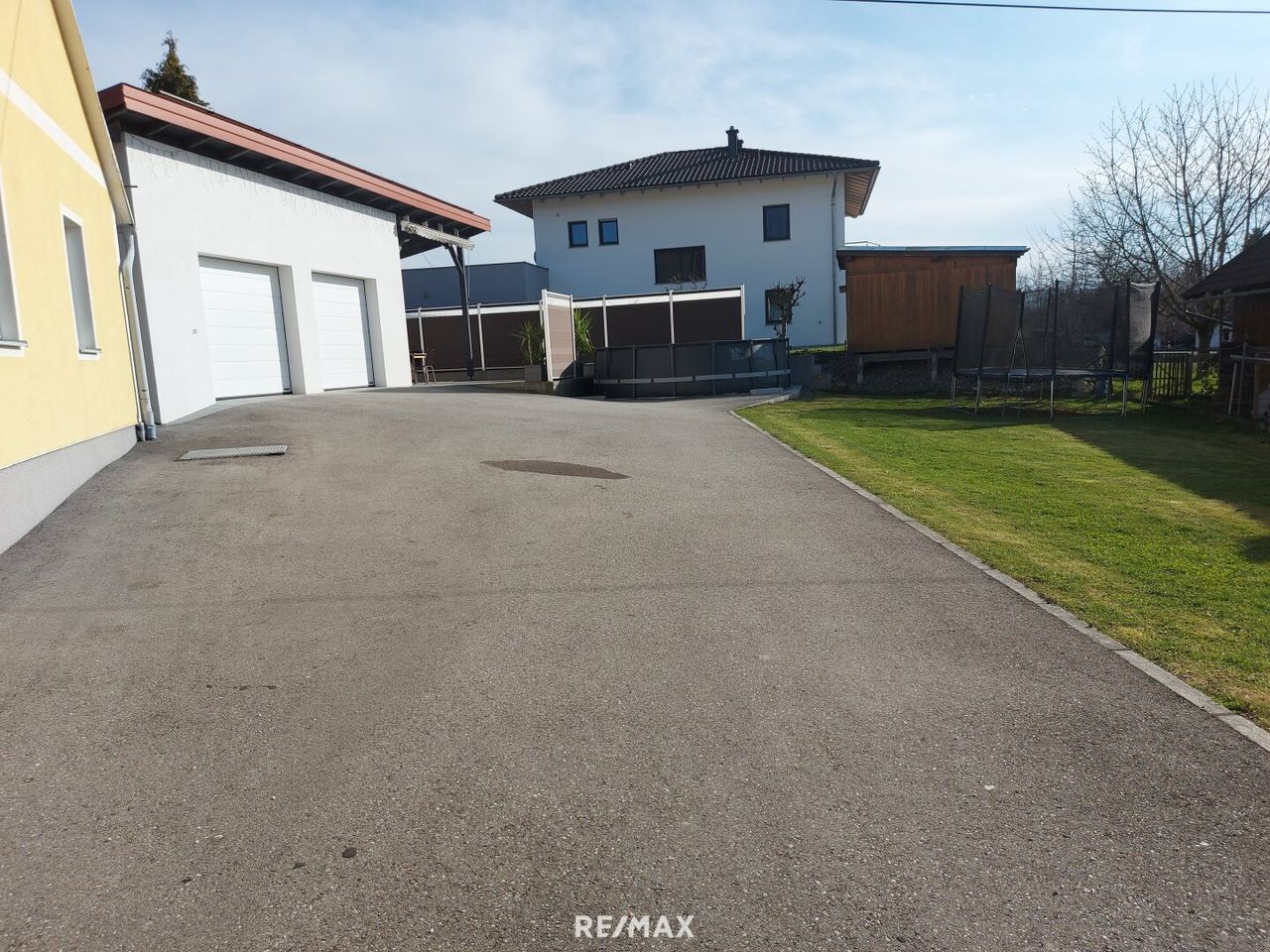 Es gibt auch eine großzügige Auffahrt mit einigen Stellplätzen.