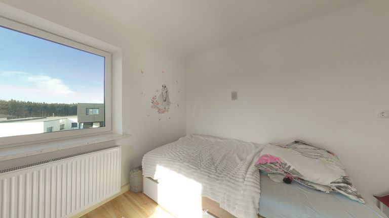 Die Raumaufteilung setzt sich folgendermaßen zusammen, im Erdgeschoss befindet sich ein Windfang, Diele, Bad mit Dusche und WC, Küche, Wohnzimmer, Esszimmer und ein Arbeitsraum. Im Obergeschoss ein Flur, Elternschlafzimmer und 2 weitere Schlafzimmer.