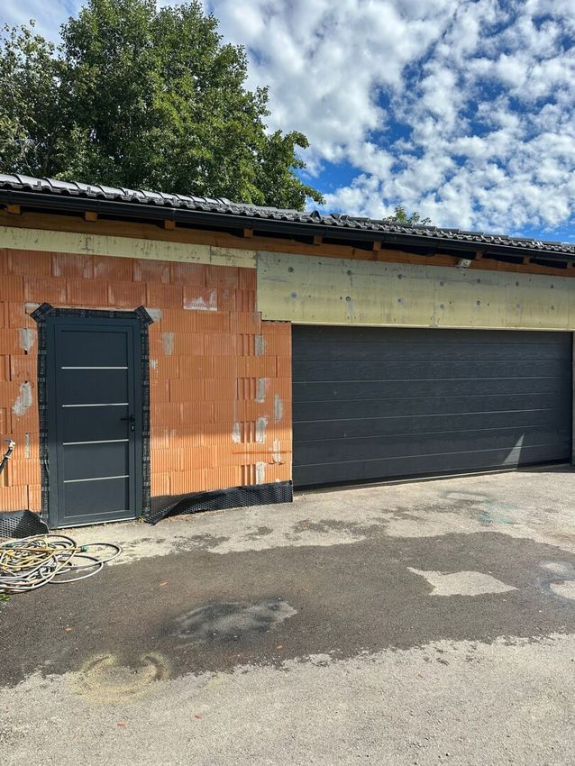 Des Weiteren wurde die Zufahrt asphaltiert 🚗, über diese erreichen Sie die Doppelgarage 🚙 sowie den angrenzenden Abstellraum 📦.