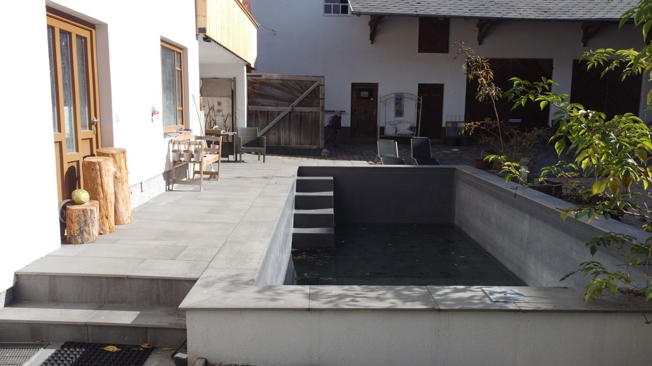 Wohnung 1 Haupthaus Erdgeschoß saniert 2015 : 136 qm Wohnfläche mit Schwimmbad im Innenhof 2 SZ, Küche,Wohn/ Eßzimmer,Bad, WC, Heizraum,Vorhaus,Kachelofen