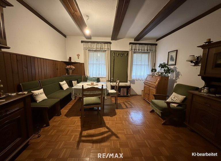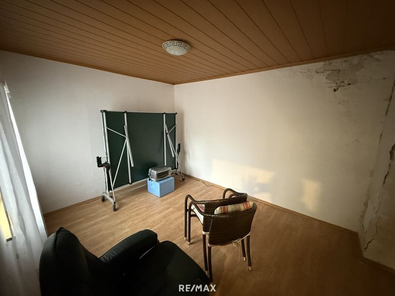 Die Liegenschaft befindet sich insgesamt in einem sanierungsbedürftigen Zustand und eröffnet damit die Chance, das Haus ganz nach den eigenen Vorstellungen zu gestalten und zu modernisieren. Einzelne Bereiche wie die Küche oder das Badezimmer sind derzeit bewohnbar, in anderen Räumen sind aufgrund von Feuchtigkeit entsprechende Sanierungsmaßnahmen einzuplanen.