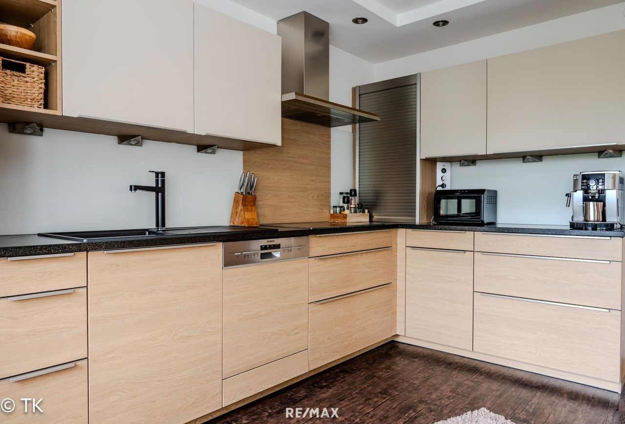 Auch infrastrukturell bleiben keine Wünsche offen: Das Haus ist an das Ortswasser-, Kanal- und Glasfasernetz angeschlossen. Die Beheizung erfolgt über eine moderne Pelletsheizung. Dank der ausgezeichneten Energieeffizienz liegt der jährliche Pelletsverbrauch bei lediglich rund 2,5 Tonnen. Ergänzt wird das technische Gesamtpaket durch eine hochwertige Ausstattung, darunter eine Alarmanlage sowie eine flächendeckende LAN-Verkabelung.