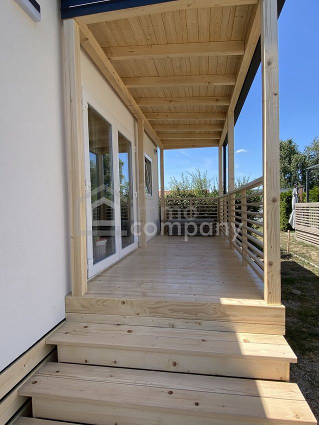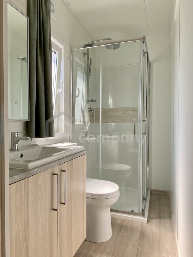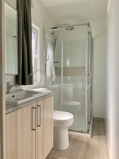 Das neue Mobilheim verfügt über - 2 Schlafzimmer - Wohnküche - Bad mit WC und Dusche. - neue Klimaanlage.