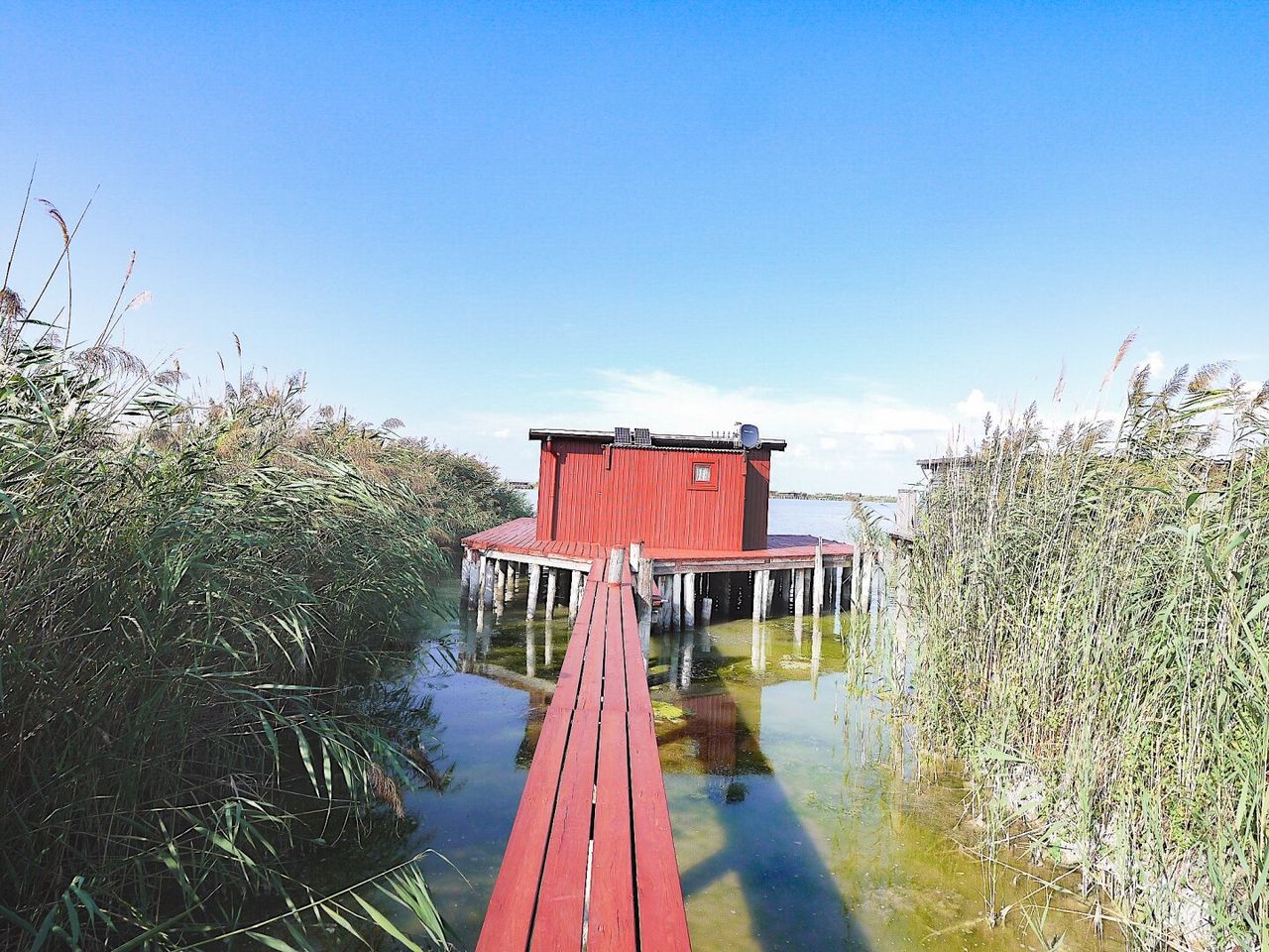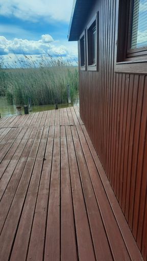- hinter der Hütte einen Steg, an dem Sie Ihre Boote anhängen können und
