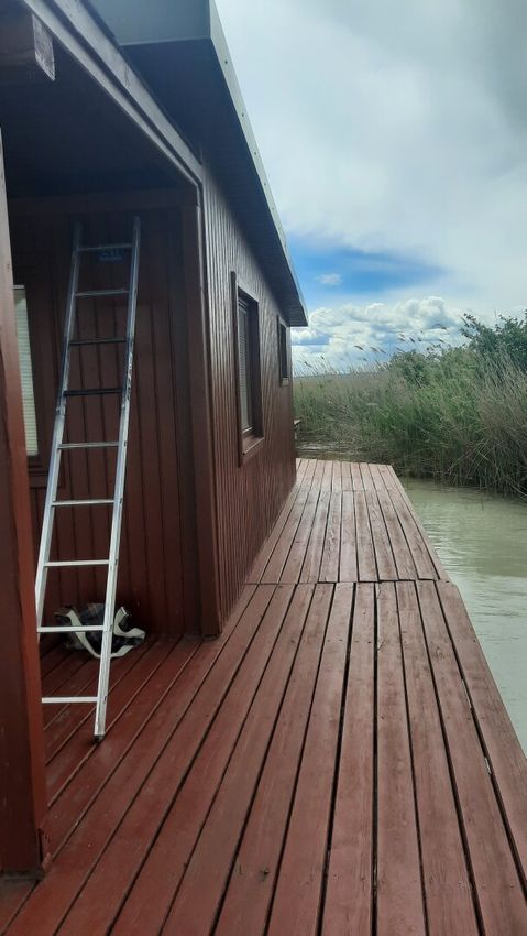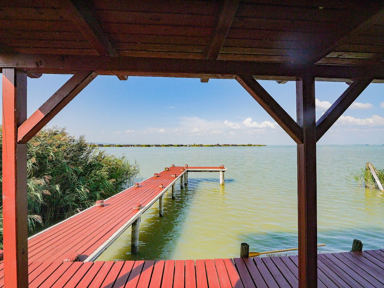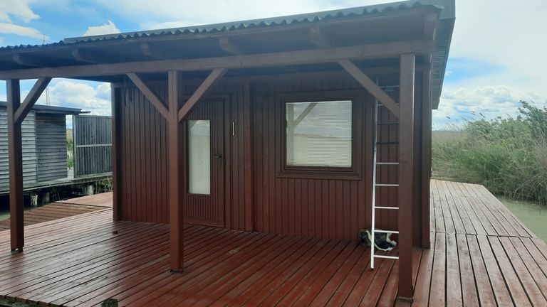 - hinter der Hütte einen Steg, an dem Sie Ihre Boote anhängen können und