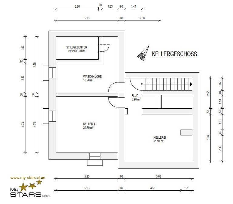 Im Kellergeschoß wurde das Gewölbe sowie die Marmorstiege und Böden freigelegt und in den Originalzustand versetzt.