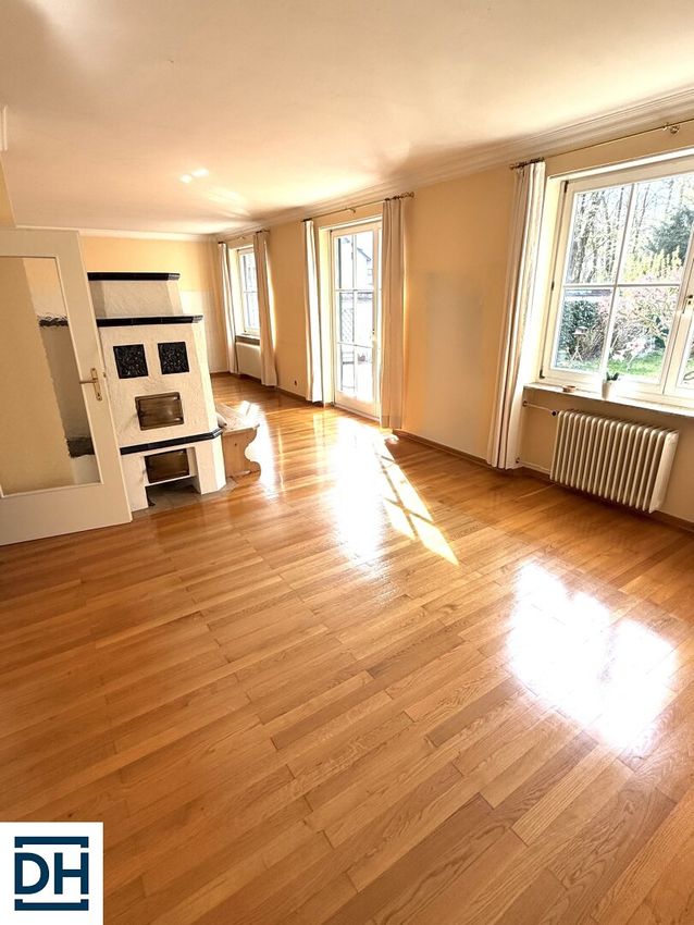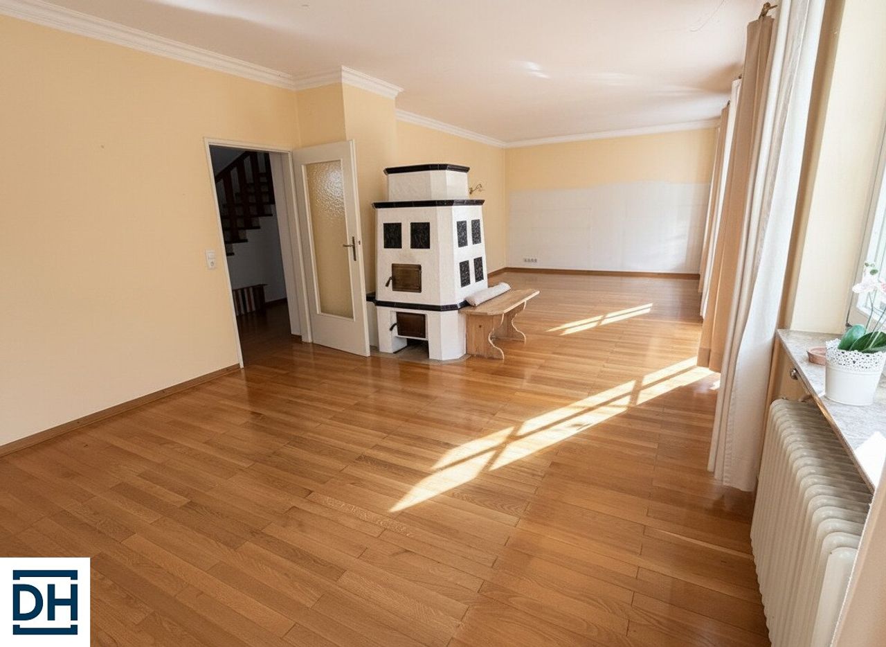Besonders hervorzuheben sind der großzügige rund 40 m² große Wohnbereich mit Kachelofen und die südseitig ausgerichtete Terrasse, sowie der angrenzende Garten mit Gaisbergblick, der zum Entspannen im Grünen einladet und das...