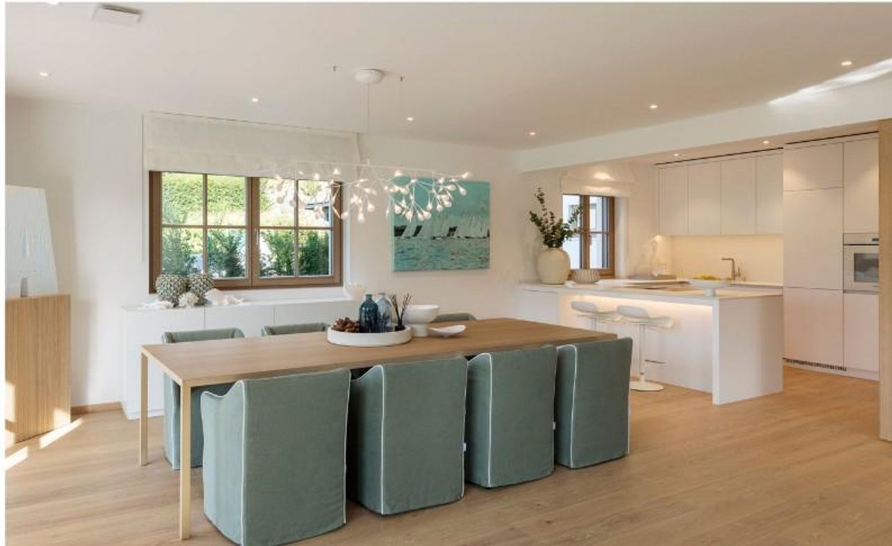 Diese exklusive Seevilla vereint moderne Architektur, großzügige Raumkonzepte und höchste Bau- sowie Ausstattungsqualität. Auf einem ca. 944 m² großen Grundstück mit einer Uferlänge von rund 13,6 m erstreckt sich eine Wohn-/Nutzfläche von ca. 378 m². Die Villa verfügt über insgesamt fünf Schlafzimmer, jeweils mit eigenem Bad en suite, sowie einen weitläufigen Wohn- und Essbereich mit offener, hochwertig ausgestatteter Küche. Insgesamt stehen sechs Badezimmer sowie ein zusätzliches Gäste-WC im Erdgeschoss zur Verfügung. Die Außenbereiche bieten ein einzigartiges Wohngefühl mit direktem Seezugang, einem liebevoll gestalteten Garten, einer großzügigen Terrasse auf der Seeseite sowie zwei Balkonen mit Blick ins Grüne. Eine Außendusche und...