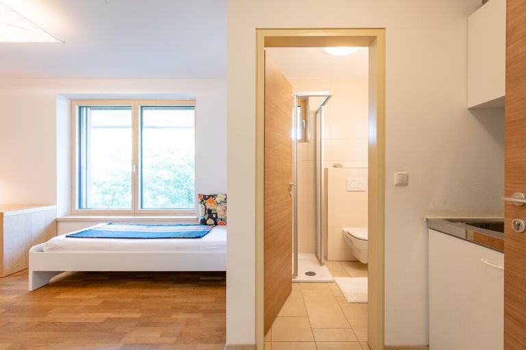 - OG: 4 Zimmer, jeweils mit Bad/WC und Teeküche, kündbar vermietet und über das zentrale Stiegenhaus aufgeschlossen.