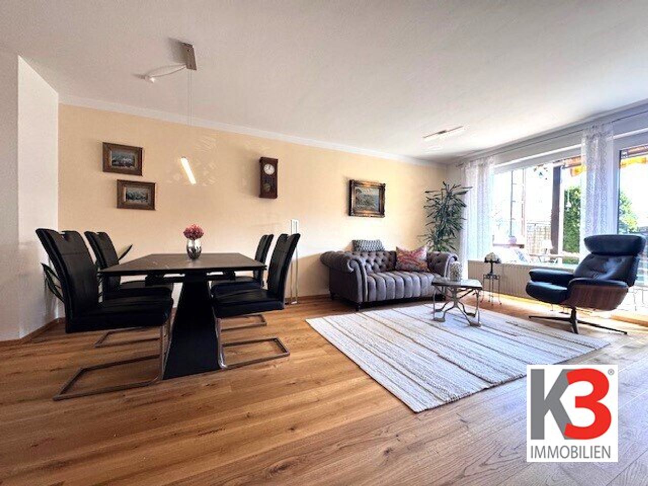 - Koch-/Ess-/Wohnbereich - Durch die große Fenster- und Terrassentürenfront wird der schöne Raum herrlich mit viel Tageslicht durchflutet. Im gesamten Bereich wurde ein...