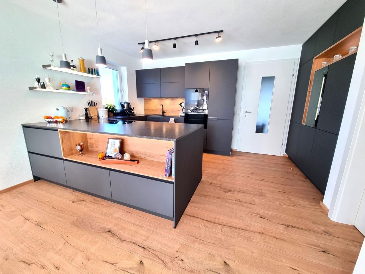 Im Erdgeschoss befindet sich der großzügig gestaltete Wohn- und Essbereich mit offener Küche. Von hier aus gelangt man direkt auf die sonnige Terrasse und weiter in den eigenen Garten. Ergänzt wird das Erdgeschoss durch ein Gäste-WC sowie einen praktischen Abstellraum.