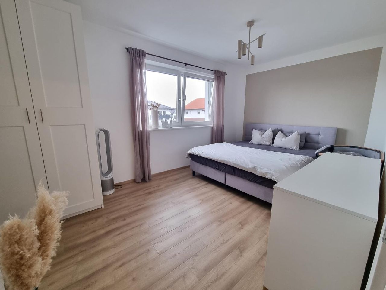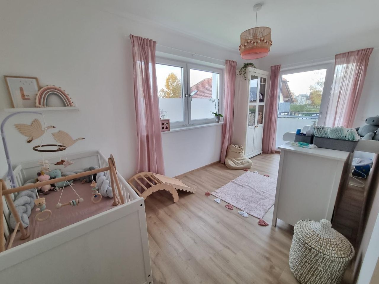 Das Obergeschoss bietet zwei Kinderzimmer sowie ein Elternschlafzimmer. Das moderne Badezimmer ist mit Dusche, Badewanne, Waschbecken und WC ausgestattet. Zusätzlich steht im Dachboden ein weiteres Schlafzimmer mit Balkon zur Verfügung, das je nach Bedarf individuell ausgebaut oder im Selbstausbau gestaltet werden kann.