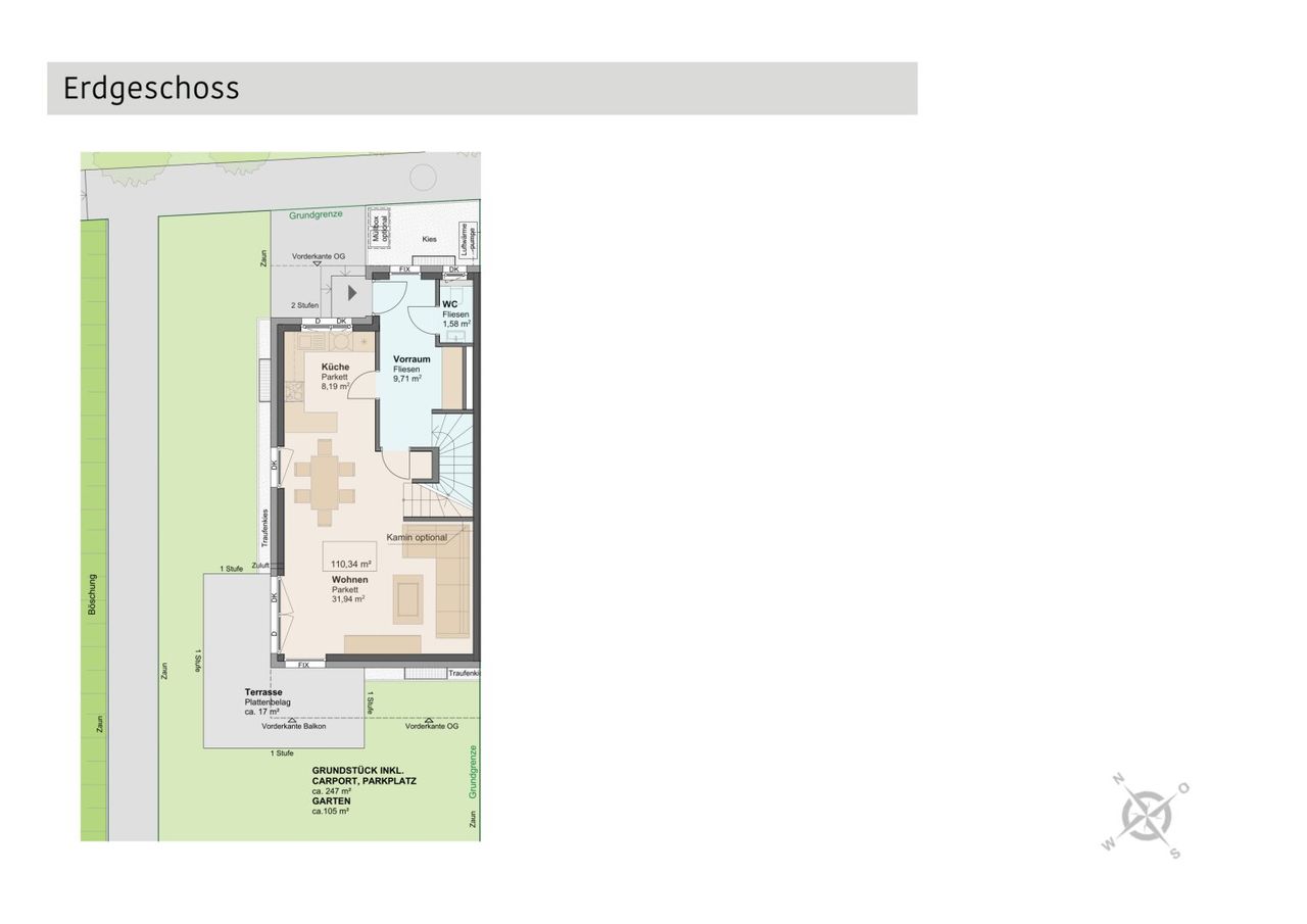 Parken: Ein Carport-Stellplatz sowie ein zusätzlicher PKW-Freistellplatz direkt am Haus sind vorhanden.
