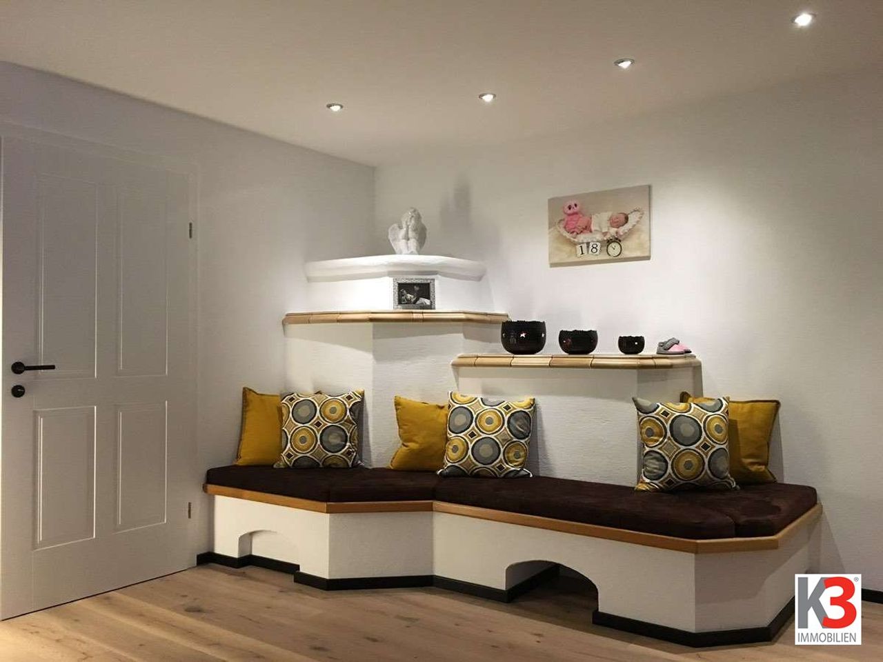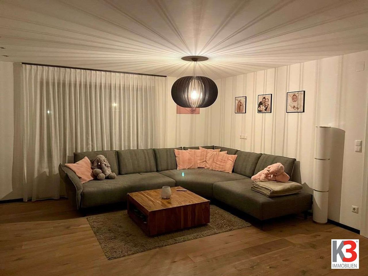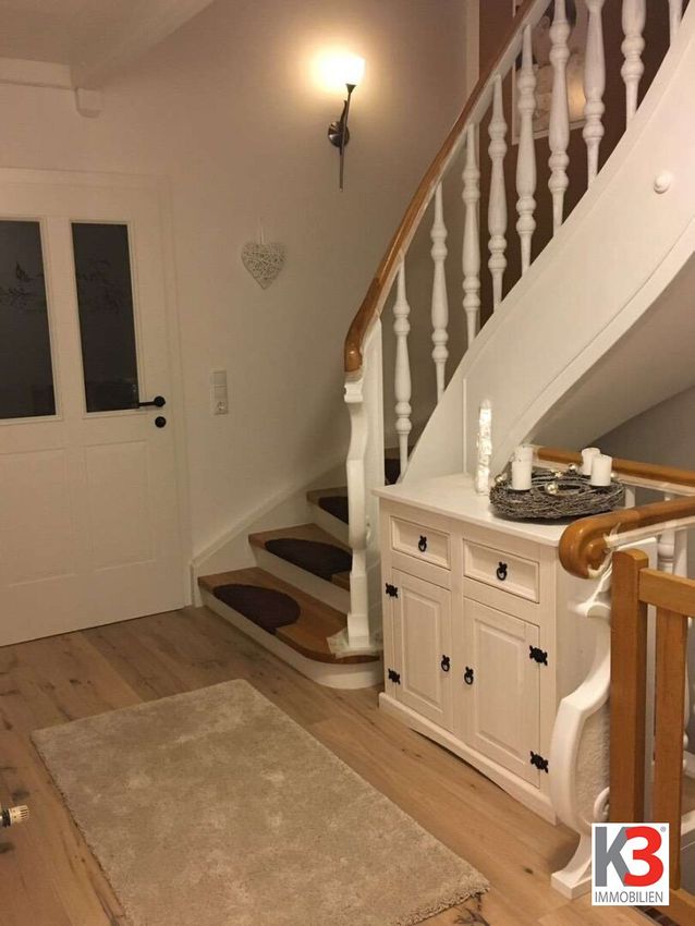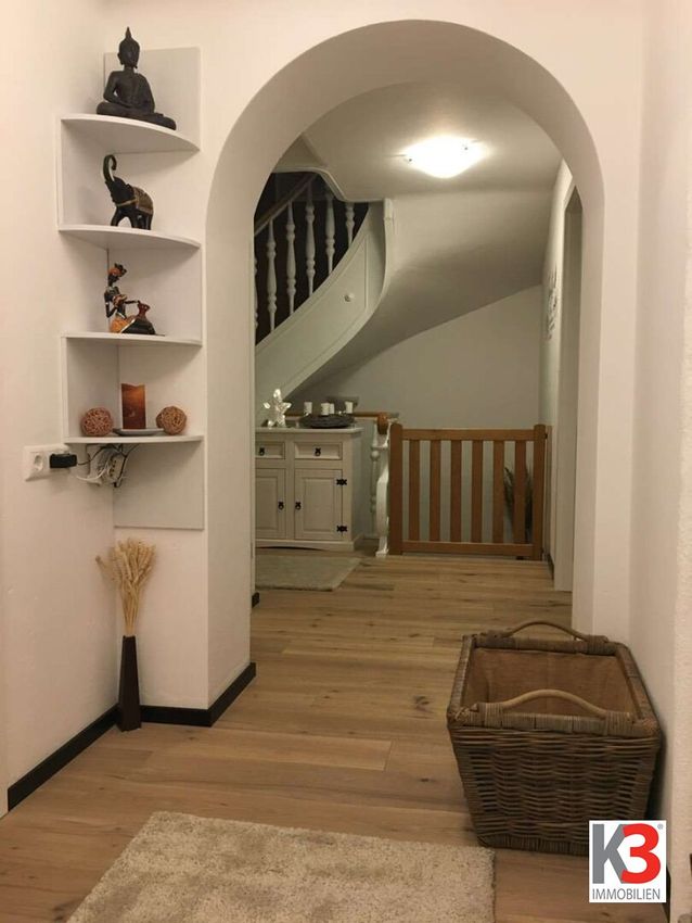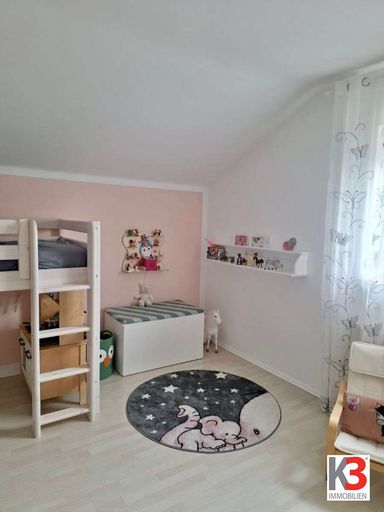 Vom großzügigen Wohnzimmer aus gelangen Sie direkt auf die Terrasse und in den Garten mit Pool – ideal zum Entspannen und für gesellige Stunden. Im Obergeschoss befinden sich drei helle Schlafzimmer, von denen aus Sie Zugang zu einem sonnigen Südbalkon haben.