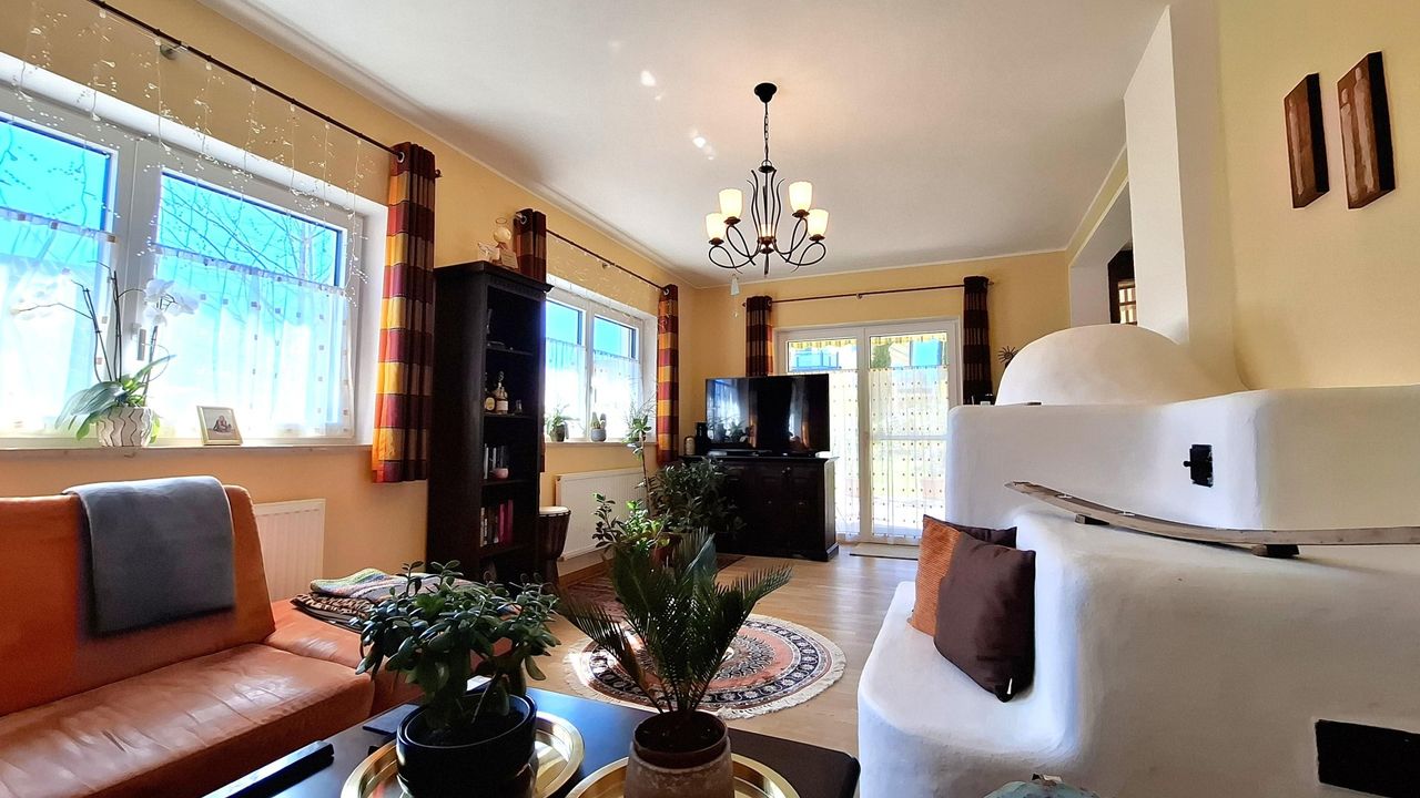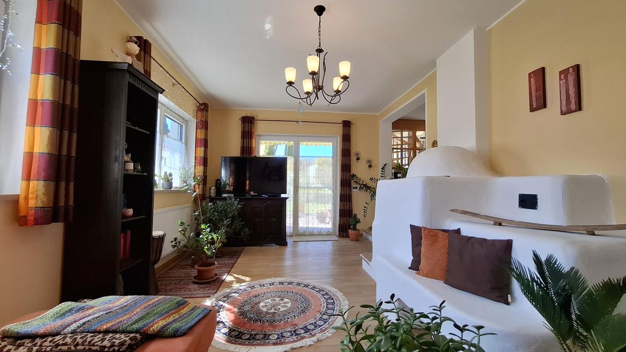 Im Inneren überzeugt das Erdgeschoss durch eine durchdachte Raumstruktur: Neben einem Eingangsbereich mit Diele, Garderobe und separatem WC steht eine große Küche mit angrenzender Speisekammer zur Verfügung. Das helle Esszimmer mit Erker schafft eine angenehme Wohnatmosphäre und ist ebenso wie das geräumige Wohnzimmer mit einem traditionellen Kachelofen ausgestattet, der für behagliche Wärme sorgt. Vom Wohnzimmer aus besteht direkter Zugang zur Terrasse und in den Garten.