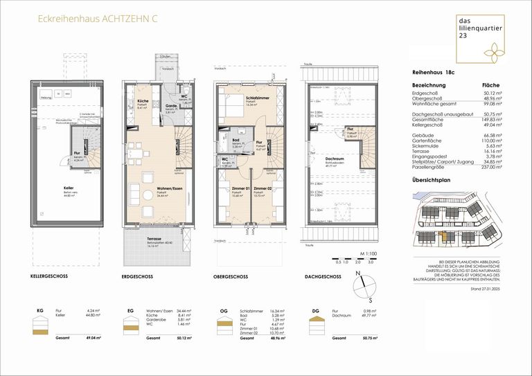 DAS LILIENQUARTIER 23 | Traumhaftes Eckreihenhaus 'ACHTZEHN C' | Doppelcarport und Keller