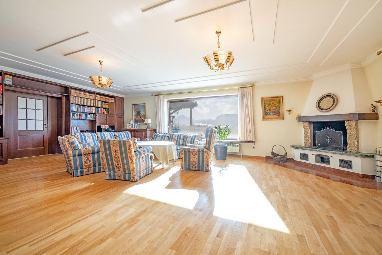 Großzügiges Haus mit Entwicklungspotenzial, Hallenbad, Wellness und Bergblick Dieses außergewöhnliche Wohnhaus liegt nur wenige Minuten vom beliebten Ortsteil Guggenthal entfernt – in ruhiger, naturnaher Lage mit traumhaftem Bergblick. Errichtet 1969 und laufend erweitert, überzeugt die Liegenschaft mit einer Gesamtnutzfläche von rund 589 m² auf einem ca. 1.225 m² großen Grundstück. Davon entfallen etwa 400 m² auf reine Wohnfläche. Im Erdgeschoss erwarten Sie helle, großzügig geschnittene Räume. Eine modern gestaltete DAN-Küche aus dem Jahr 2025 mit angrenzendem, etwa 20 m² großen Essbereich bildet das Herzstück dieser Ebene. Das rund 65 m² große Wohnzimmer mit offenem Kamin und direktem Zugang zur Terrasse...