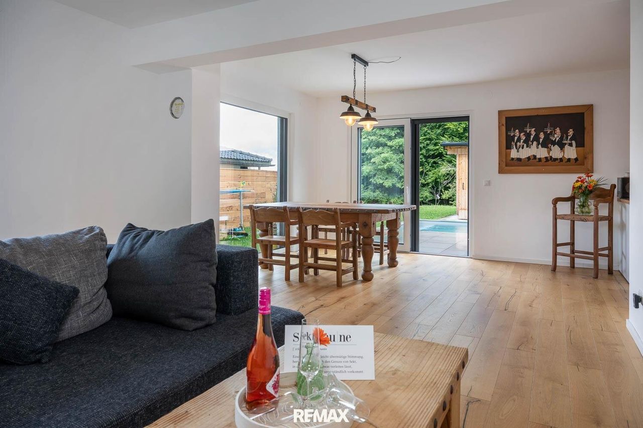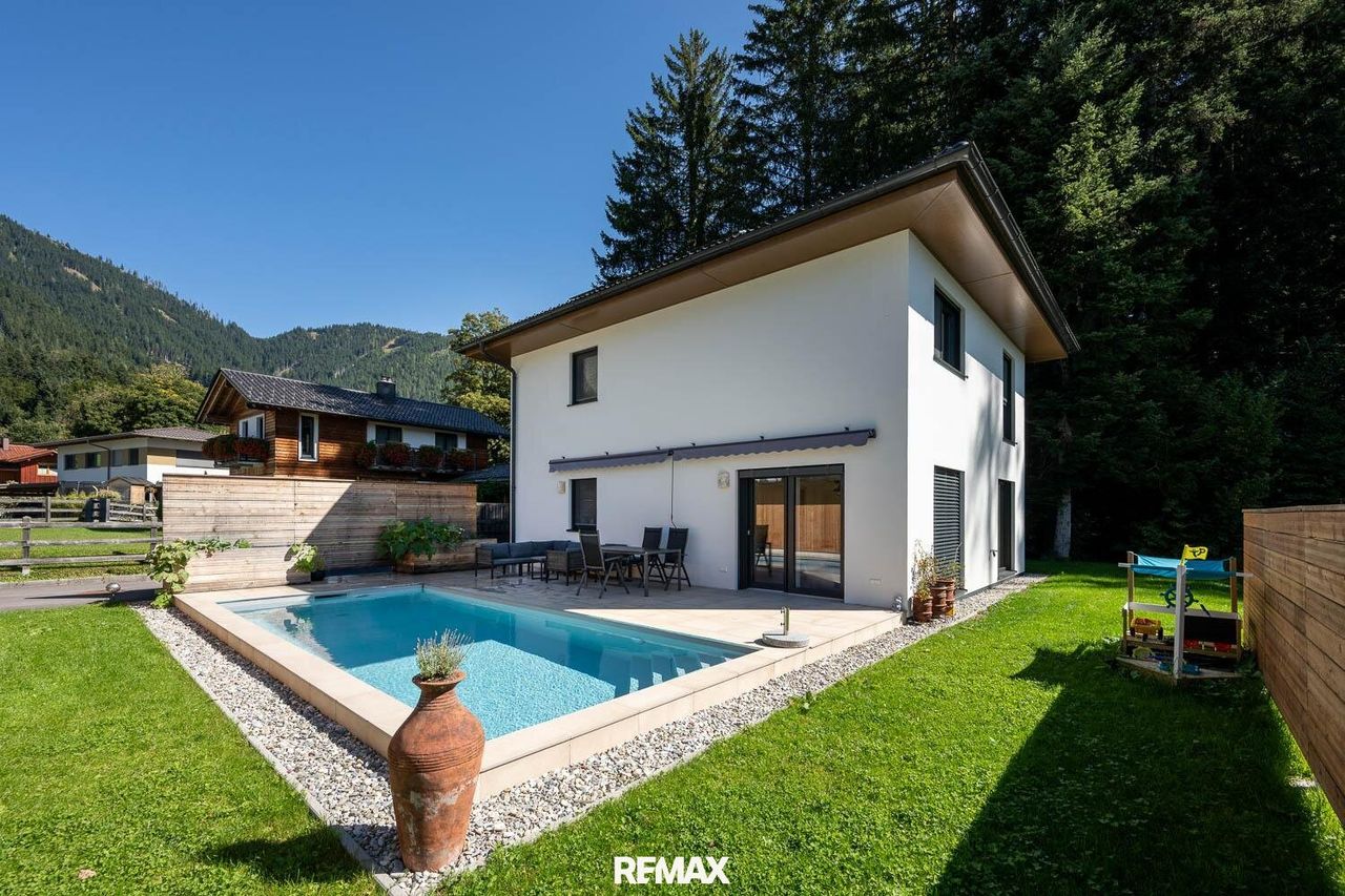 "Modern Living Zistelberg" – Einfamilienhaus in Pfarrwerfen! Dieses elegante Einfamilienhaus in Pfarrwerfen, im idyllischen Ortsteil Zistelberg, vereint modernen Wohnkomfort mit naturnahem Lebensgefühl. Die gesamte Immobilie präsentiert sich in neuwertigem Zustand und wurde mit viel Liebe zum Detail umgesetzt – von den hochwertigen Bodenbelägen über die energieeffiziente Bauweise bis hin zur harmonischen Einbettung in die Umgebung. Das im Jahr 2022 errichtete Haus überzeugt durch seine durchdachte Architektur, exzellente Ausstattung und eine großzügige Terrasse mit Pool. Auf rund 131,5 m² Wohnfläche verteilen sich im Erd- und Obergeschoss drei helle Schlafzimmer, zwei stilvolle Badezimmer sowie ein offener Wohn- und Essbereich mit direktem Zugang...