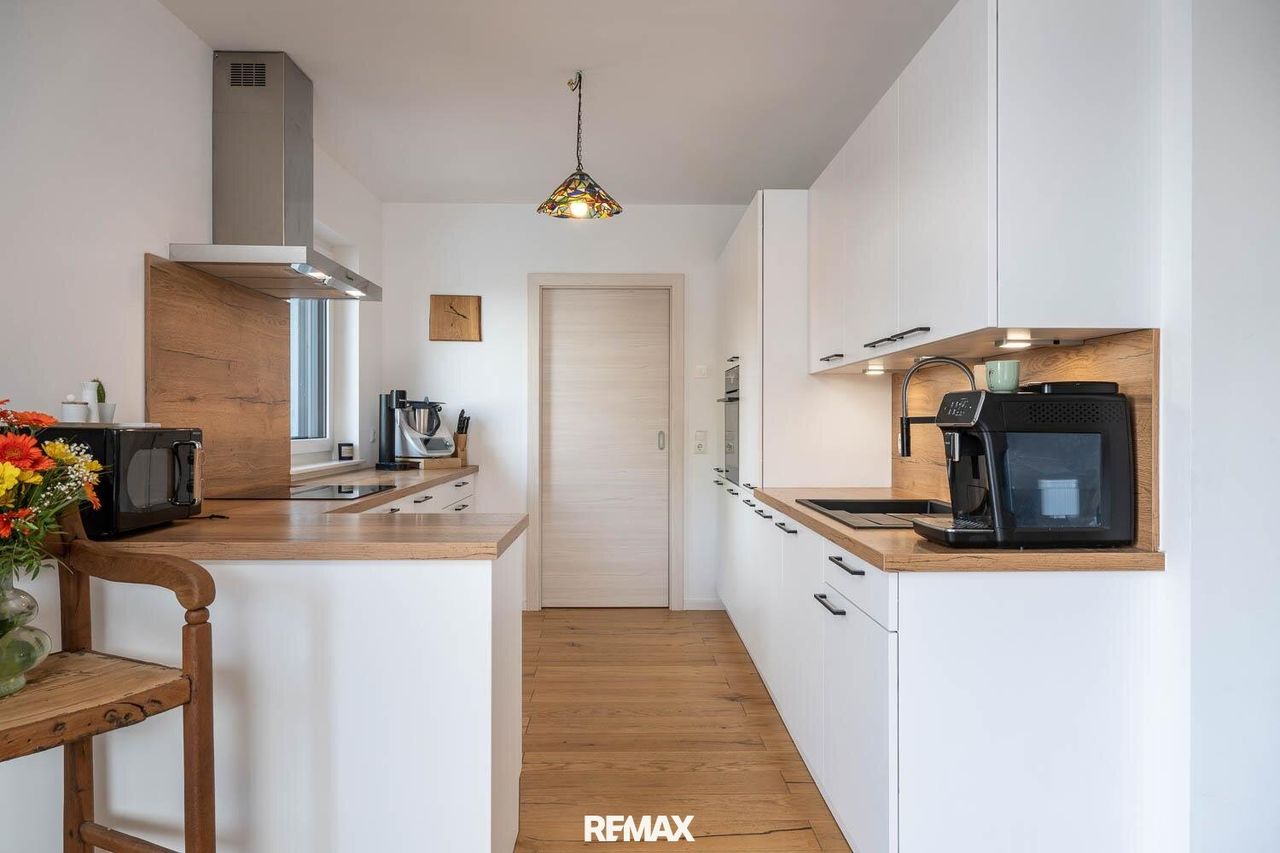 Das im Jahr 2022 errichtete Haus überzeugt durch seine durchdachte Architektur, exzellente Ausstattung und eine großzügige Terrasse mit Pool. Auf rund 131,5 m² Wohnfläche verteilen sich im Erd- und Obergeschoss drei helle Schlafzimmer, zwei stilvolle Badezimmer sowie ein offener Wohn- und Essbereich mit direktem Zugang zur Terrasse und zum Pool. Die moderne Küche mit Holzarbeitsflächen fügt sich perfekt ins Raumkonzept ein und sorgt für ein warmes, einladendes Ambiente.