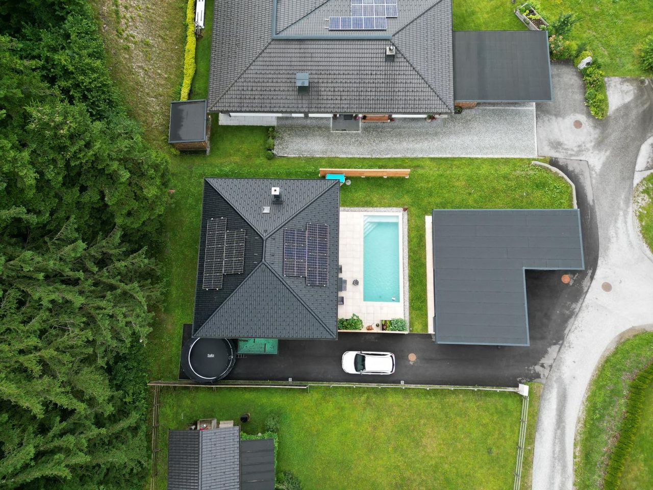 Besonders hervorzuheben ist der liebevoll gestaltete Außenbereich mit sonniger Terrasse, Pool und viel Platz für Freizeit und Geselligkeit. Das separate Carport bietet Stellfläche für zwei Fahrzeuge und beherbergt ein rund 40 m² großes Nebengebäude – vielseitig nutzbar, etwa als Wellnessoase mit Sauna, als Werkstatt oder kreatives Atelier.