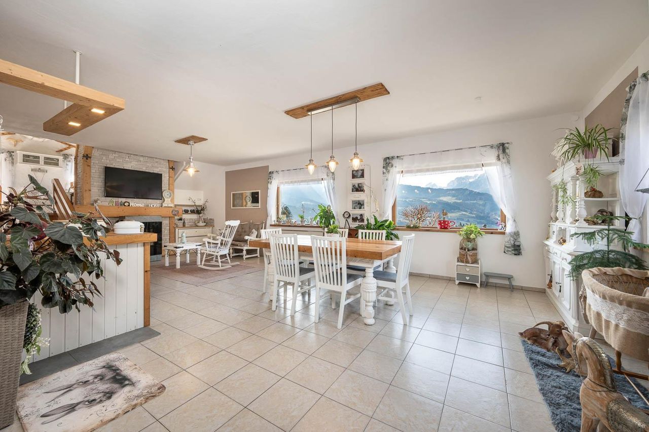 "Wo Lebensqualität beginnt" - Haus mit Panoramaausblick in absoluter Ruhelage in Pfarrwerfen! Eingebettet in die idyllische Naturlandschaft von Pfarrwerfen präsentiert sich dieses liebevoll gepflegte Einfamilienhaus als echtes Wohlfühlrefugium. Auf einem großzügigen Grundstück von ca. 801 m² vereint diese Immobilie alpinen Charme, behagliche Wohnatmosphäre und beeindruckende Ausblicke auf die umliegende Bergwelt. Mit einer Wohnfläche von ca. 215 m² wurde hier besonderer Wert auf Großzügigkeit und Wohnqualität gelegt. Herzstück des Hauses ist der offen gestaltete Wohn- und Essbereich mit Küche mit Kamin – ein Ort, der durch seine Weitläufigkeit und Helligkeit sofort begeistert. Große Fenster holen die Natur ins Haus und schaffen...
