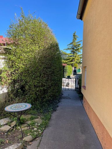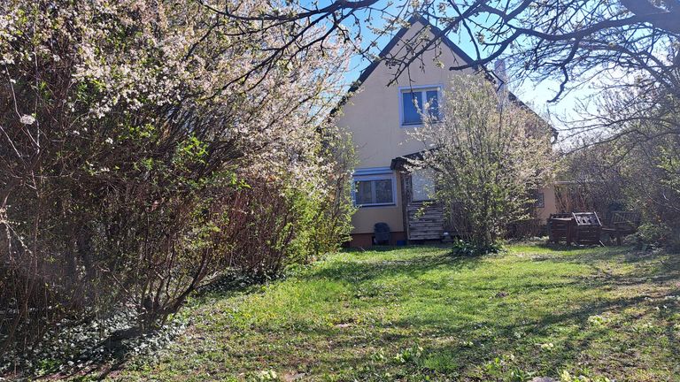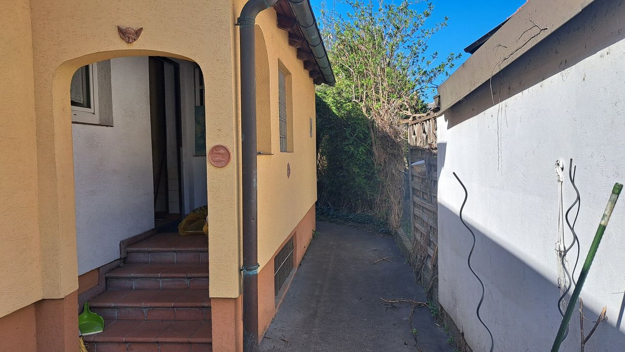 Das Grundstück besticht durch einen großen Garten der derzeit etwas verwildert ist, im Hinteren Bereich befindet sich ein überdachter Sitzplatz und ein großer gemauerter Grill– ob als Rückzugsort, Nutzgarten oder Familienparadies.
