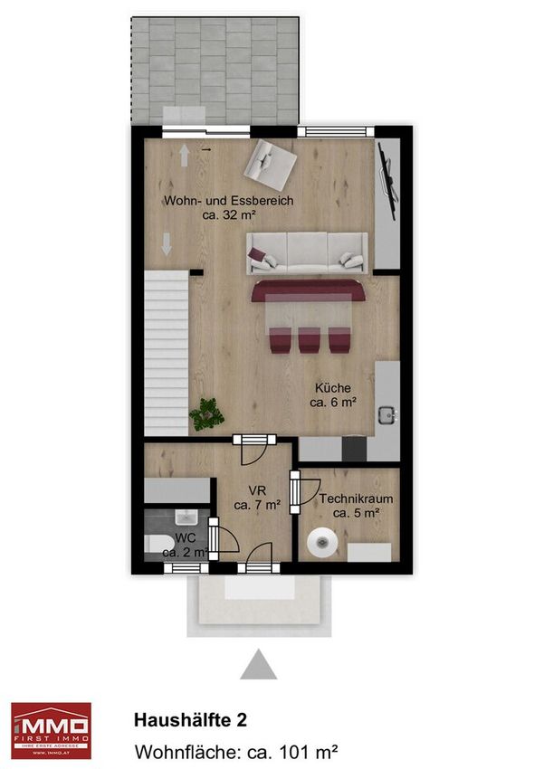 Der Kaufpreis für die Haushälfte in belagsfertigem Zustand beläuft sich auf EUR 600.000,-.